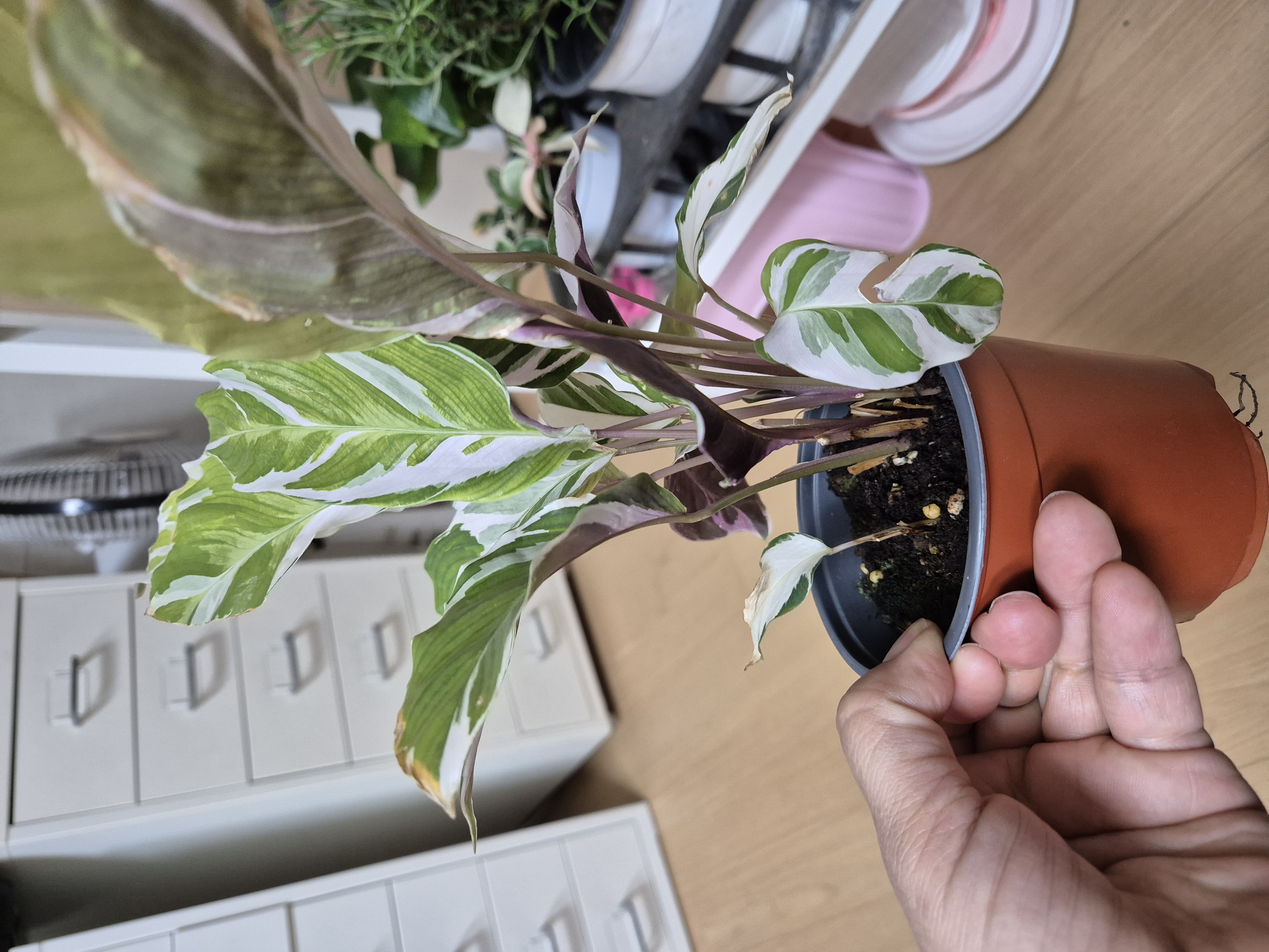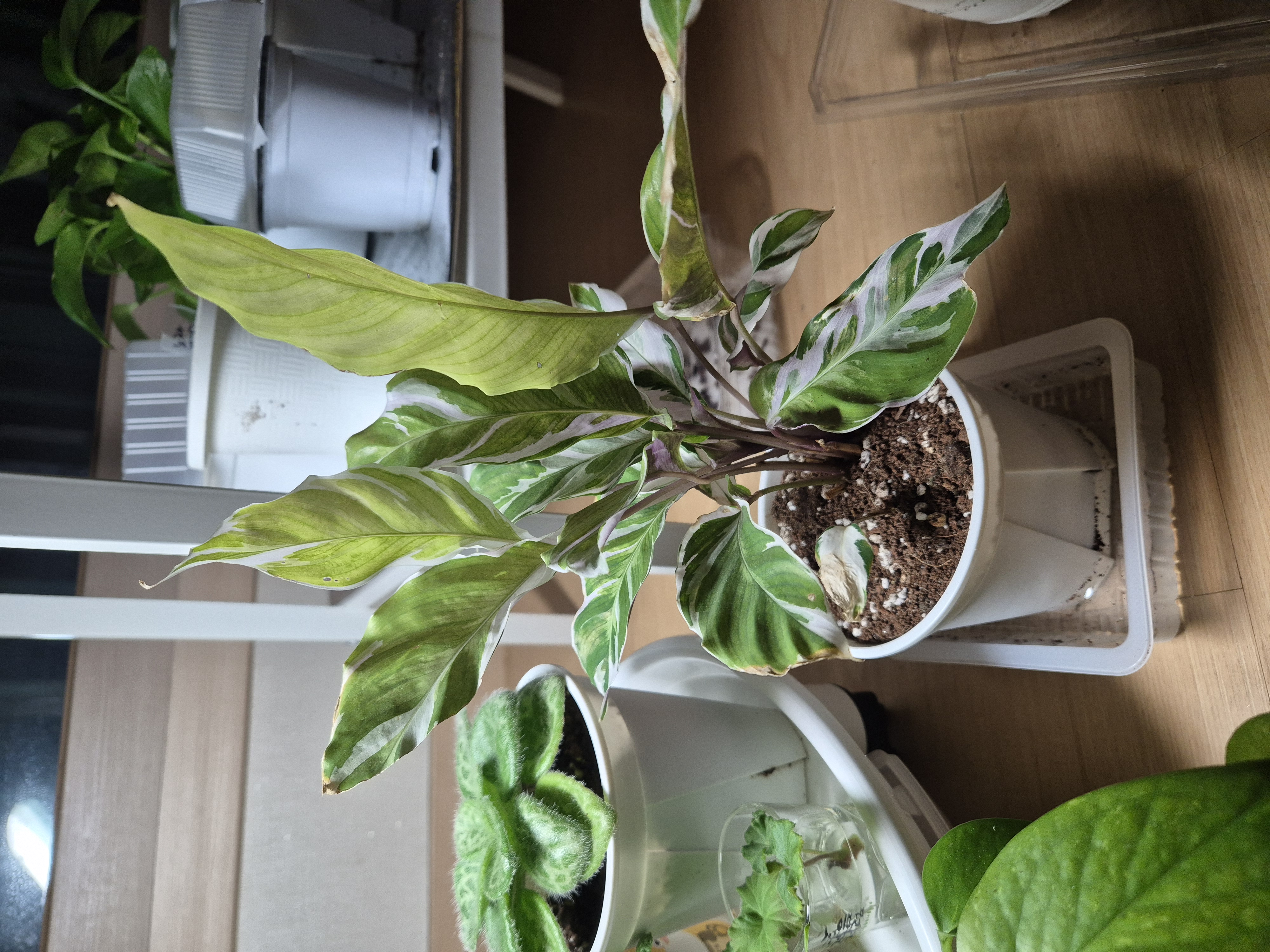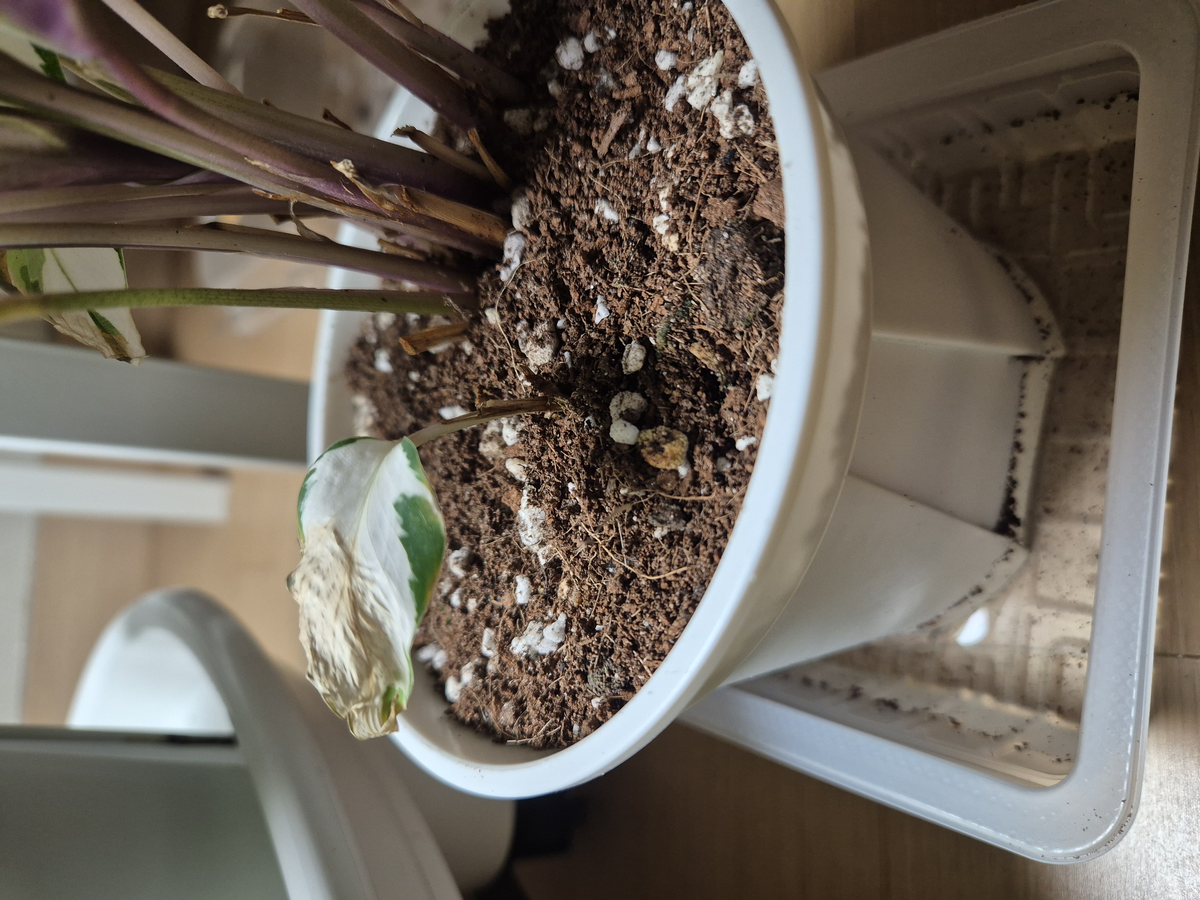 4월4일 이에요. 예전사진과 비교해보니 저 잎사귀한장이 더 말랐어요. 저면관수 해줍니다.