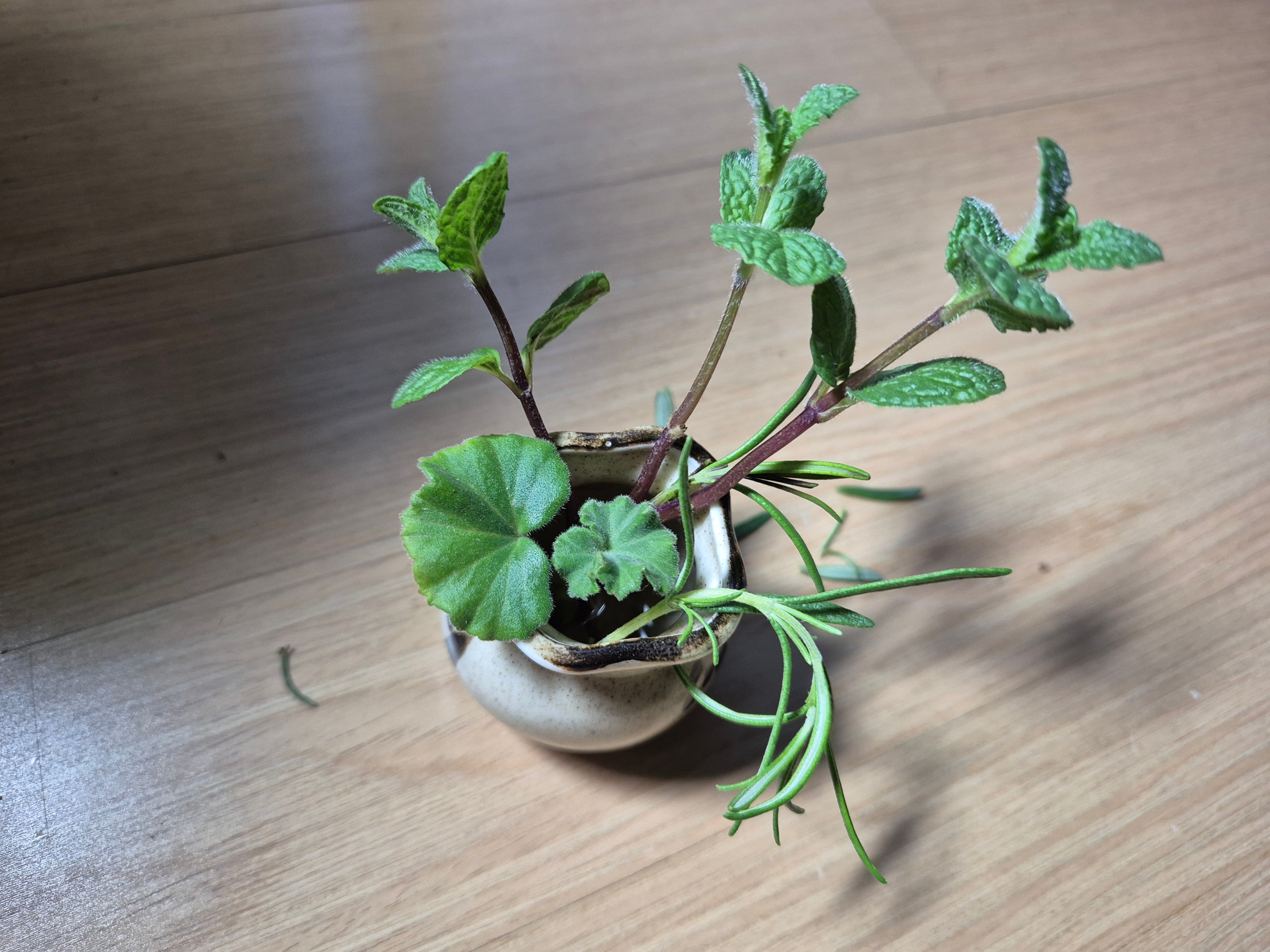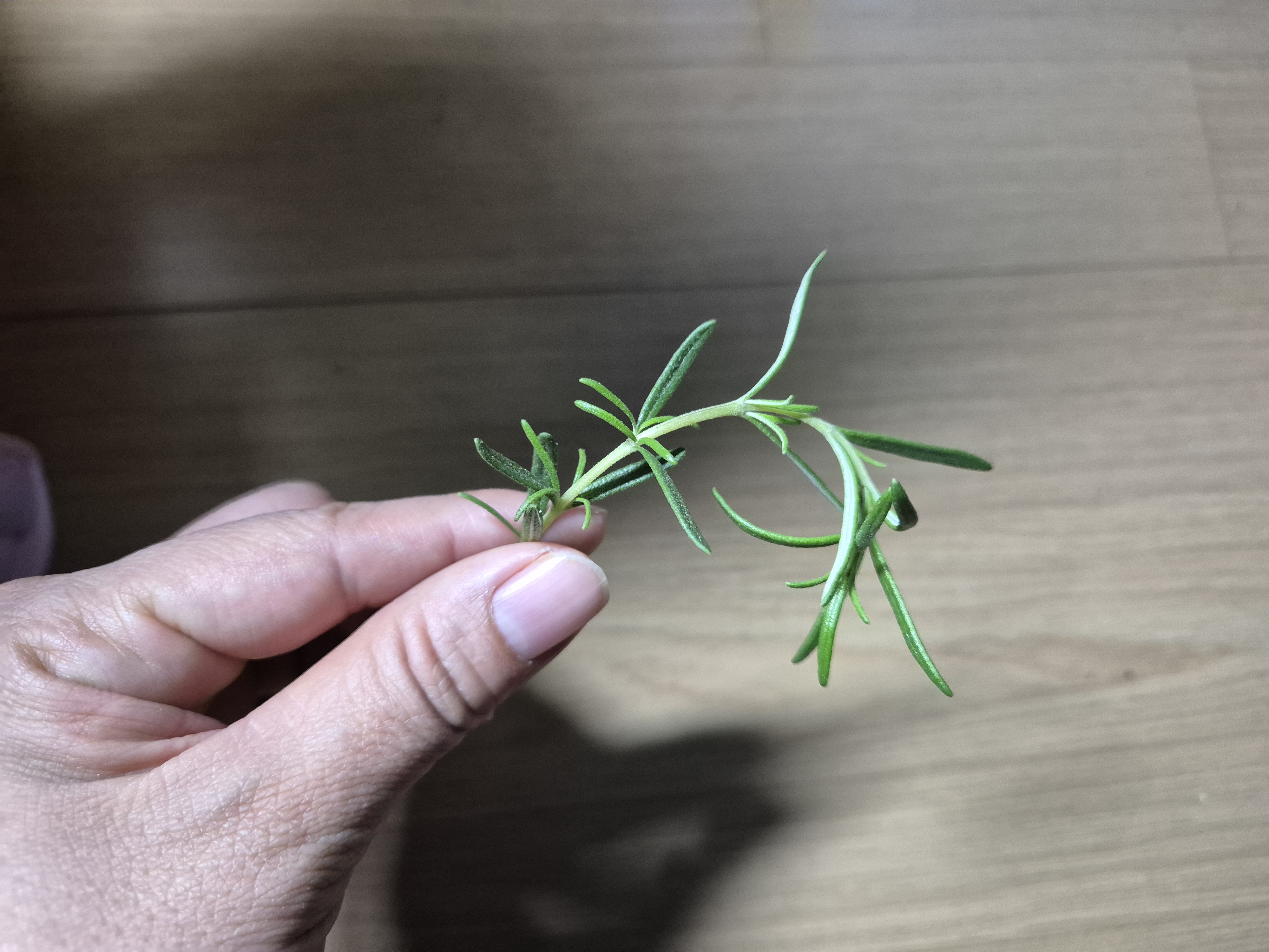 바닥에서 꺽어진 로즈마리 한줄기 발견했어요.