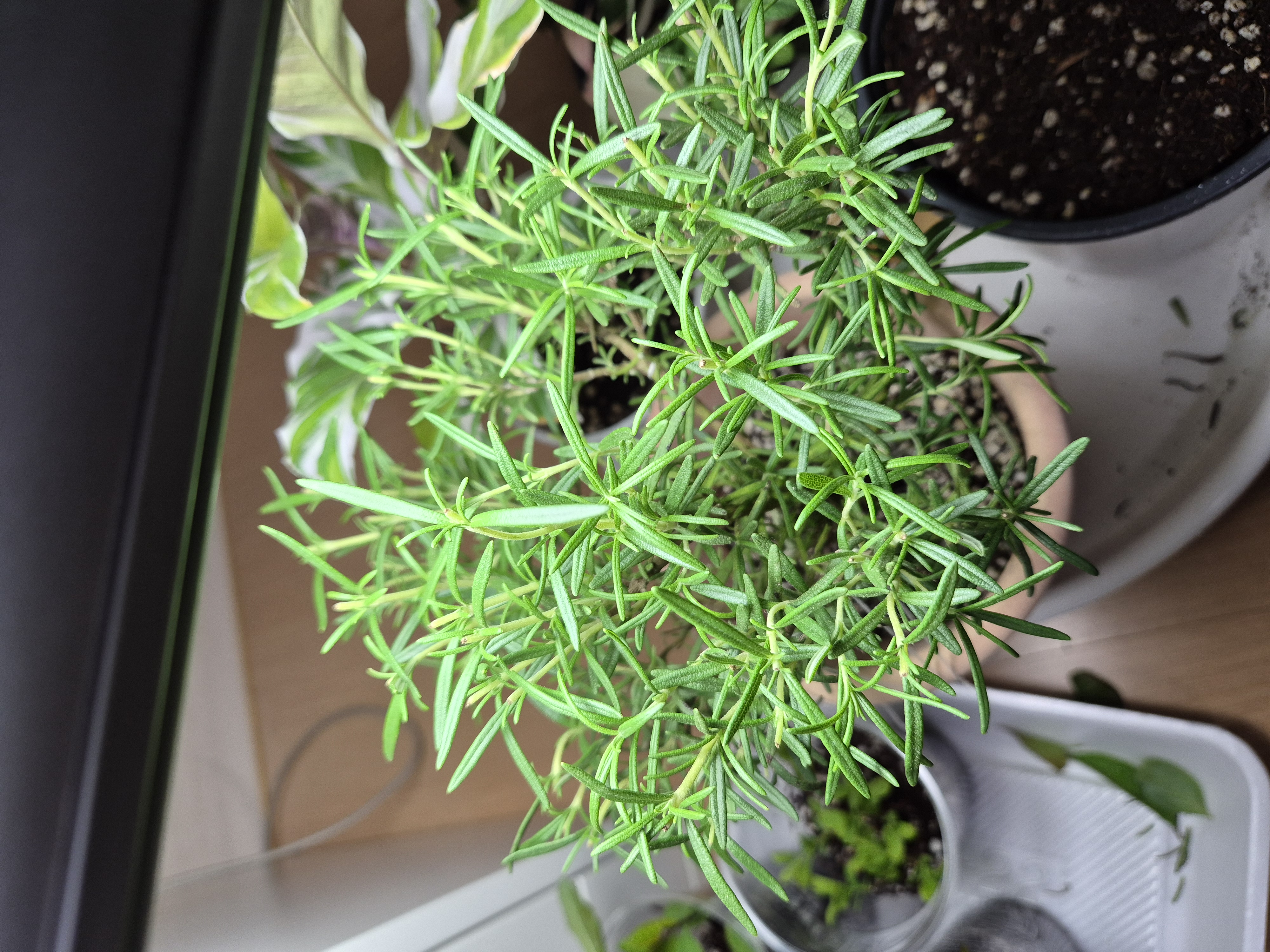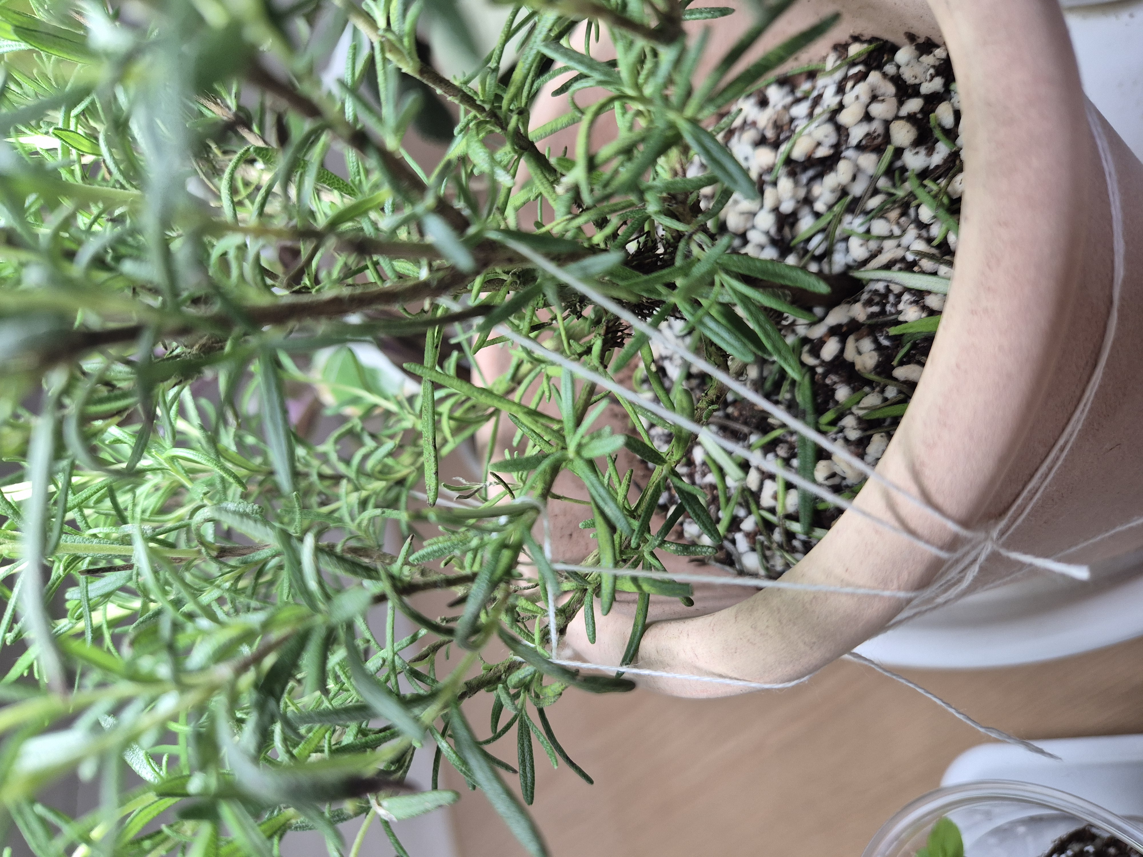 로즈마리가 통풍이 잘돼야해서 줄기와줄기 사이 간격을 펴줘야해요. 그냥 기르는분도 있지만 실내에서 키우고 온도도 안맞는데 이거정도는 해줘야할꺼 같았어요.