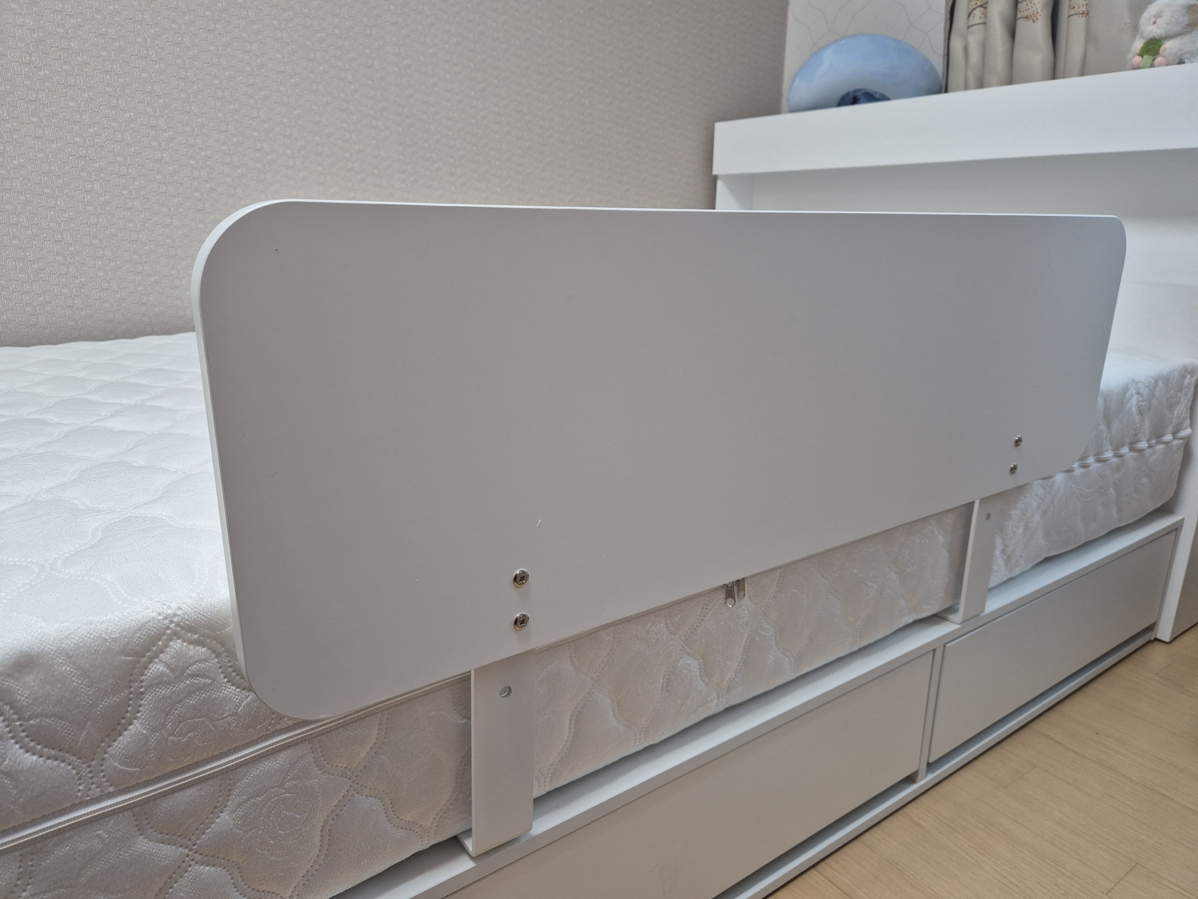 가시고 얼마 안있어서 안전가드 배송됐어요. 배송비 6천원 냈어요. 네이버에서 한샘몰 안전가드 팔던데 그건 기사님이 설치해주고 간데요. 만원 더비싸긴 한데 그냥 그거시키세요. 집에서 이거 설치하려면 힘들어요.
