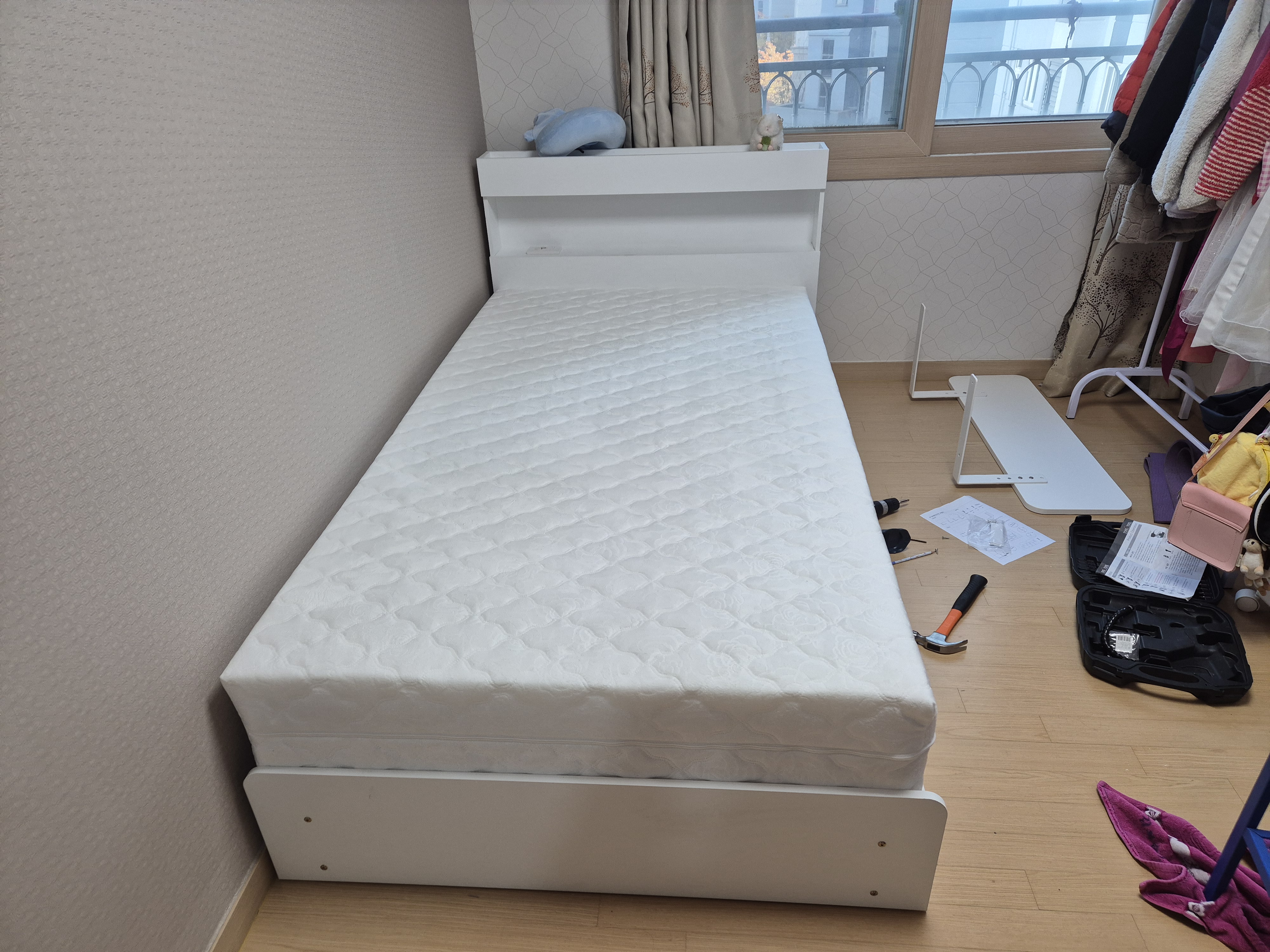독립매트리스랑 책상엔 콘센트랑 안전가드 별도구매했어요. 배송비는 별도에요.